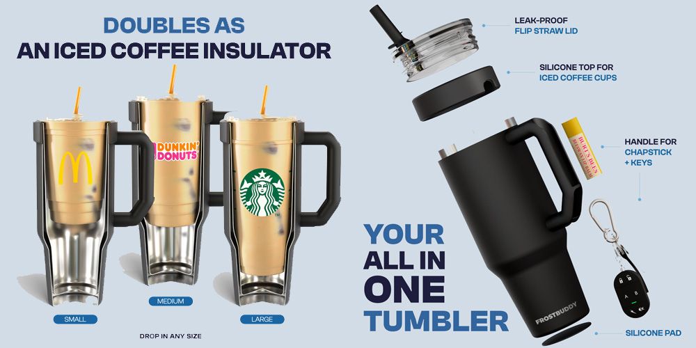 We saved the best mug for last. Meet the Thicc Buddy—the ultimate mashup of everything you love in a mug and cup insulator. One buddy. Endless uses. This 40oz Thicc Buddy features a 2-in-1 sip or straw spill-proof lid, a comfy handle with a built-in chapstick holder and key ring (because priorities), and a cup-holder-friendly design that actually fits where it should. It keeps ice cold for 24+ hours and hot drinks warm for up to 8 hours. Each Thicc Buddy comes with the body, spill-proof lid, straw, and rubber insert. And yes… it’s universal. Dare we say the universal. Fits: 12oz, 16oz, 20oz, and 30oz cups Starbucks (small, medium, large) Dunkin’ (small, medium, large) Dutch Bros (small, medium) McDonald’s (small, medium, large) Wendy’s (small, medium, large) Red Solo cups Even a pint of ice cream Say hello to your new favorite buddy.