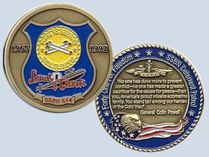 A beautiful 1.75 inch hand-painted, brass coin. The Lewis & Clark SSBN 644 boat patch design is on the front of this coin. The back is a tribute to the "41 for Freedom". I have also included a quote that I found to be appropriate for this...