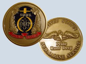 A beautiful 1.5 inch brass coin for the Submarine Maintenance Monitoring and Support Performance Monitoring Team (SMM/SPMT). These coins are designed and only available from me.