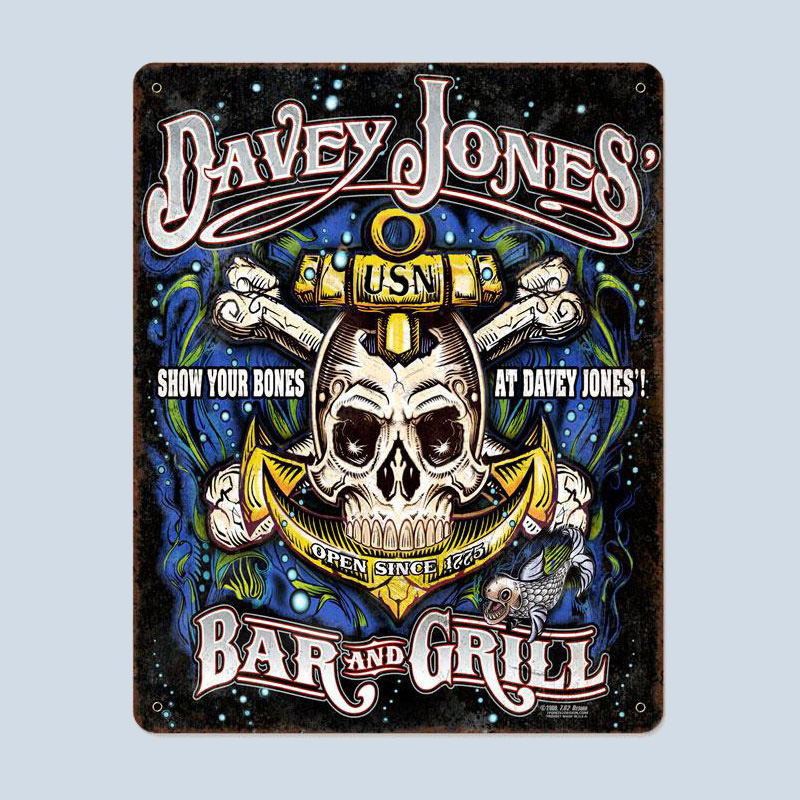 From the 7.62 Design licensed collection, this USN Davey Jones measures 12 inches by 15 inches and weighs in at 2 lb(s). We hand make all of our signs in the USA using heavy gauge American steel. These metal prints are made to last and make great gifts for any occasion.This is drilled and riveted for easy hanging.