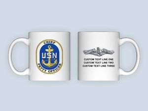 The Chief Petty Officer (CPO) Insignia been completely updated and represented in full color on these handsome 11 ounce Customized Coffee Mugs.