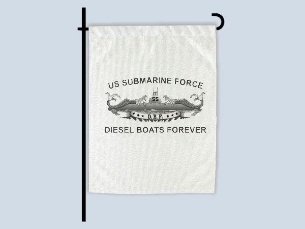 Our Diesel Boats Forever (DBF) Garden Flags are a great way to show your pride. Each single-sided polyester satin flag is printed in vivid color and measures 12" x 18" with a full loop for hanging.